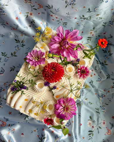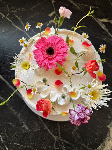 - We specifically source locally grown organic flowers and greeneries for cake decorations, and try our best to match your floral vibe, depending on seasonal availability.