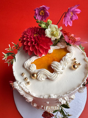 Capitol Jill Baking's Cakes are whimsical, romantic, and one-of-a-kind creations, featuring seasonal produce, unique flavor combinations, and playful organic decorations. We are big fan of moist, not-too-sweet cakes, with flavorful scratch made fruity fillings, and whimsical floral decorations. We do not use fondant in any of our cakes, offer cake writing, or do themed cake of any kind.